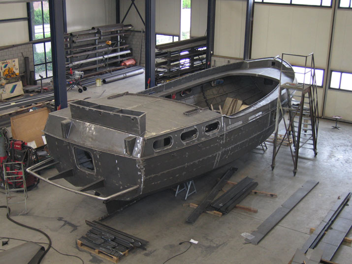 Als der Metallbauer im Süden der Niederlande den Rumpf fertig "zusammen geklopft" hatte, wurde er zu einem Spritzwerk in der Nähe von Lemmer gebracht.
