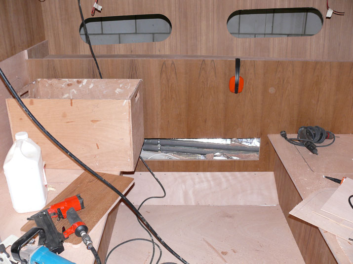 Hier wird mal die Dinette, ein Tisch mit 2 Sitzbänken, montiert und zum bequemen Verweilen einladen.
