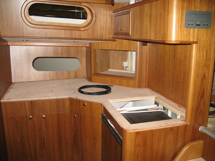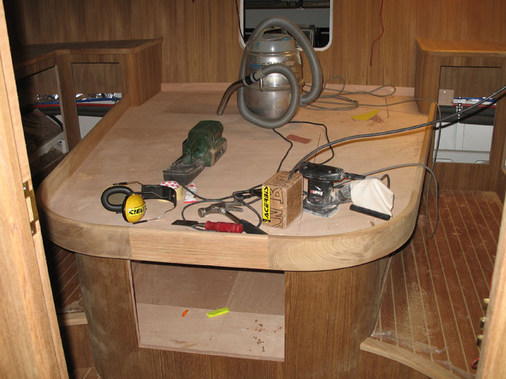 Gegenüber der Dinette wird die Küche gebaut. gekocht wird später einmal auf einem normalen 230V - Keramikkochfeld.